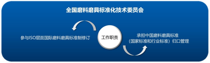 全国磨料磨具标准化技术委员会(以下简称标委会)1988年由原国家技术监督局批准成立,是在磨料磨具专业领域内从事全国性标准化工作的技术组织,负责磨料磨具专业领域的标准化技术归口工作,承担国际标准化组织ISO/TC29/SC5的国内技术对口工作,编号SAC/TC139。标委会下设普通磨料(SAC/TC139/SC1)、普通磨具及碳化硅特种制品(SAC/TC139/SC2)、超硬材料及制品(SAC/TC139/SC3)、涂附磨具(SAC/TC139/SC4)四个分技术委员会。标委会业务上接受中国机械工业联合会和中国机床工具工业协会的领导和指导。